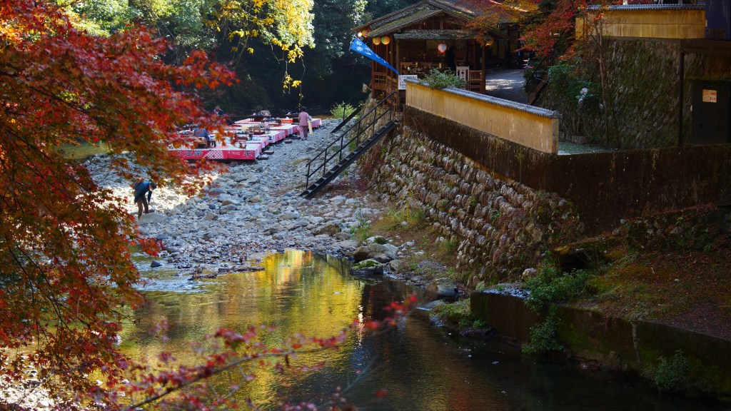 โรงย้อมผ้านี้ตั้งอยู่ติดแม่น้ำ Hozu มีมุมถ่ายภาพที่จัดไว้ให้เป็นลำดับ ตามคิวของผู้เข้ามาชม(ซึ่งทั้งหมดมาถ่ายรูป)