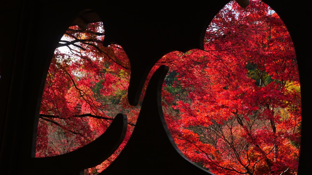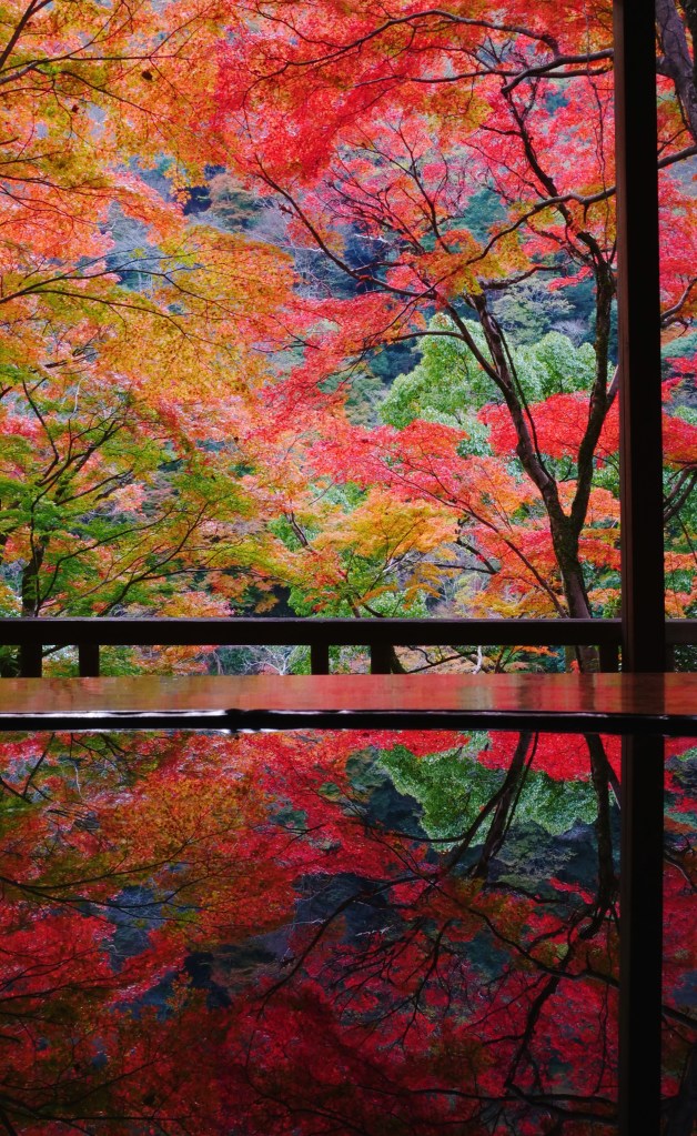 ภาพเงาสะท้อน momiji ที่งดงาม