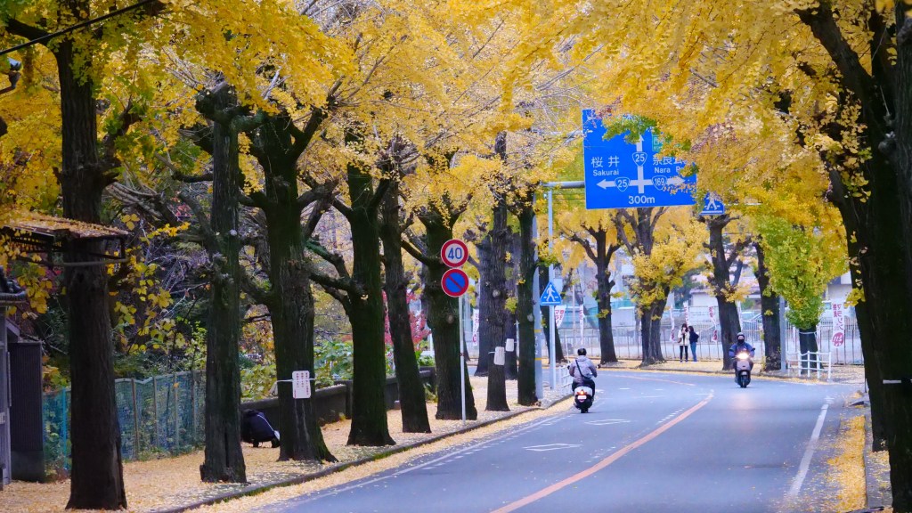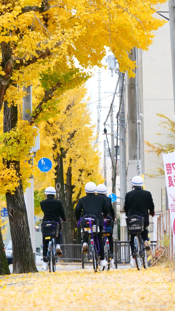 เริ่มจะเอียนกับใบไม้แดง Momiji บ้างแล้ว ช่วงบ่ายจึงข้ามมาเที่ยวเมือ Tenri ที่มีถนน Gingko