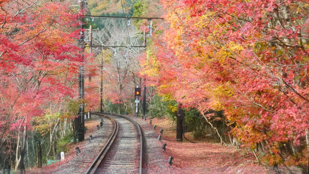 มองเห็นรถไฟ Eizan ที่แล่นผ่านได้ใกล้ชิด