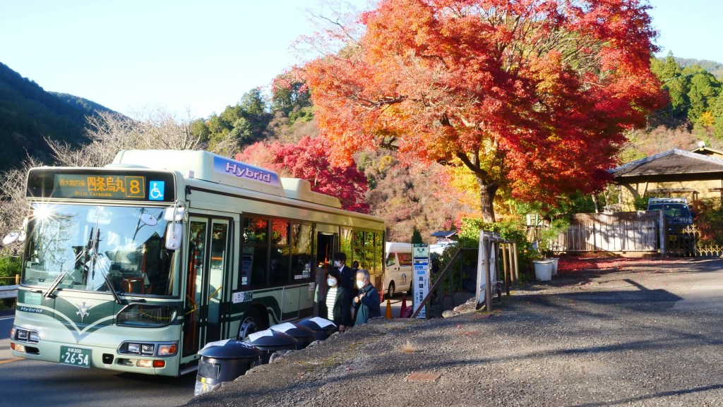 การเดินทาง นั่งรถบัส Kyoto JR Bus ปลายทาง Toganoo ที่หน้าสถานีรถไฟ Kyoto (ป้ายรถบัสหมายเลข 3)