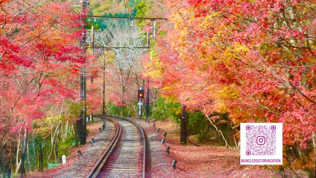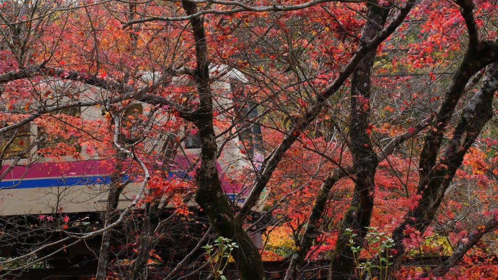 ก่อนจะถึงสถานี Ninose นั้น รถไฟจะแล่นผ่านอุโมงค์เมเปิลสีแดง รถไฟจะค่อยๆลดความเร็วเพื่อให้เราชมความงามของ Momiji Tunnel ในบางขบวนจะมีการจัดที่นั่งรถไฟให้หันหน้าชมด้านข้างโดยเฉพาะด้วย เป็นการเพิ่มอรรถรสในการนั่งรถไฟเที่ยวในแบบเจแปนิสสไตล์โดยแท้ เสียงผู้ประกาศบนขบวนรถไฟจะบอกให้ผู้โดยสารทราบว่าขณะนี้รถกำลังแล่นผ่าน Momiji Tunnel ในช่วงเวลาพิเศษที่มีเพียงไม่กี่วันในรอบปี