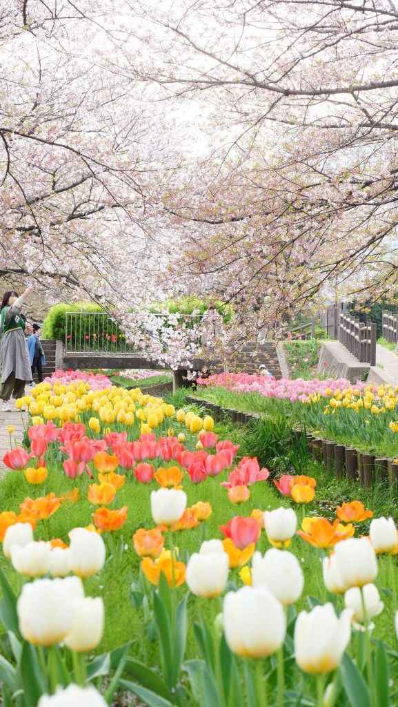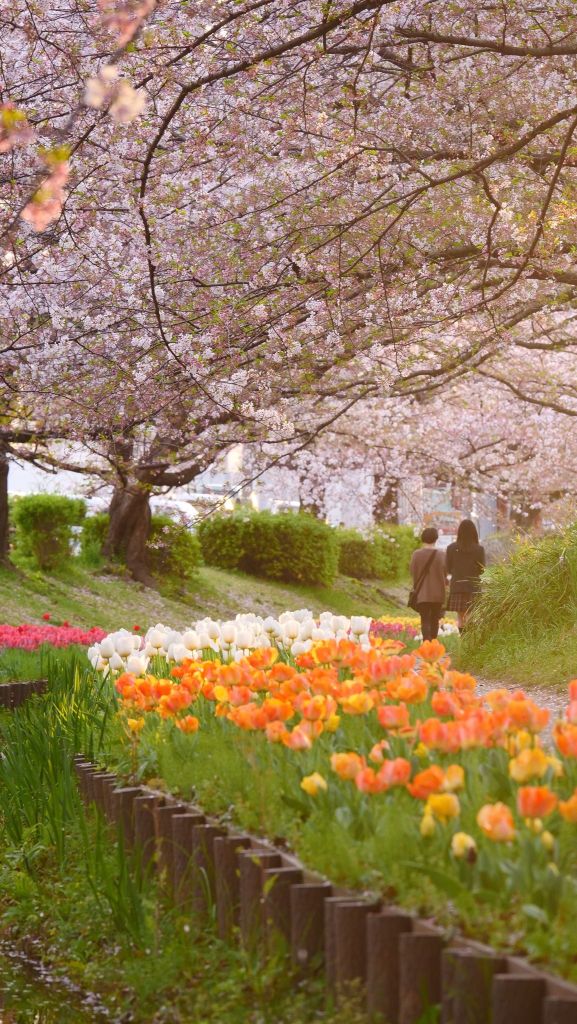 สวัสดีเพื่อนๆที่หลงรักฤดูกาลและชื่นชอบดอกไม้ วันนี้ฉันจะพาไปชมดอกไม้ที่สวยงามในช่วงฤดูใบไม้ผลิ และมีความพิเศษนั่นก็คือ ซากุระกับ ทิวลิปที่จะบานพร้อมกันทุกปี ฉันหมายมั่นที่นี่มาหลายปี รอบนี้ฉันต้องไปถ่ายรูปดอกไม้ให้ครบทุกสีเพื่อให้กะทิไว้ใช้สวัสดีตอนเช้า
