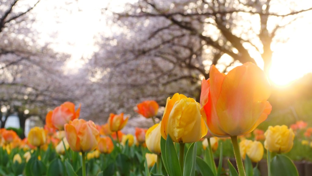 ปกติซากุระกับทิวลิปอาจจะไม่ได้บานเต็มที่พร้อมๆกันทุกปี โดยตัวแปรน่าจะอยู่ที่ซากุระ ถ้าปีไหนซากุระบานไวมากๆ ทิวลิปก็อาจจะบานไม่ทัน อย่างปีนี้ซากุระบานและร่วงไปไวทิวลิปค่อยๆทยอยตามมาที่หลัง แต่ไม่ว่าจะอย่างไรที่นี่ก็มีดอกไม้สวยๆให้ชมแน่นอนถ้าหากเรามาในช่วงต้นเดือนเมษายน