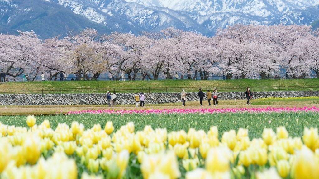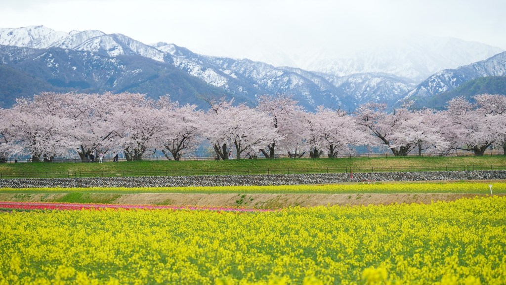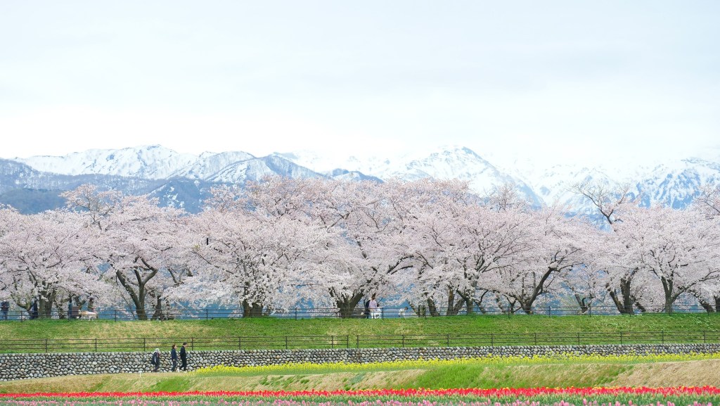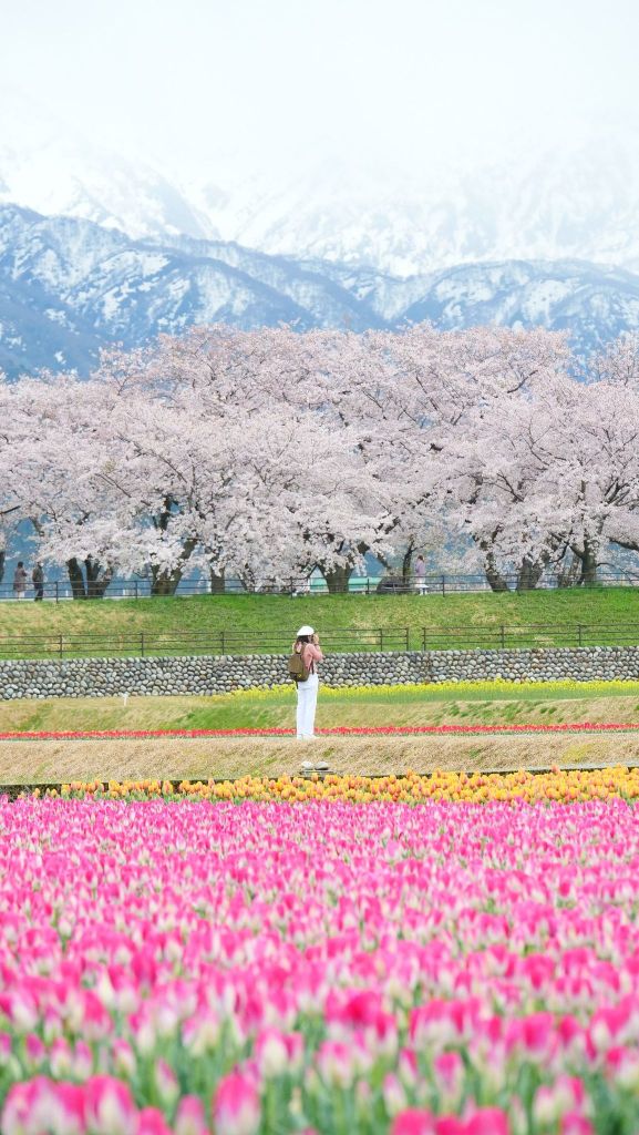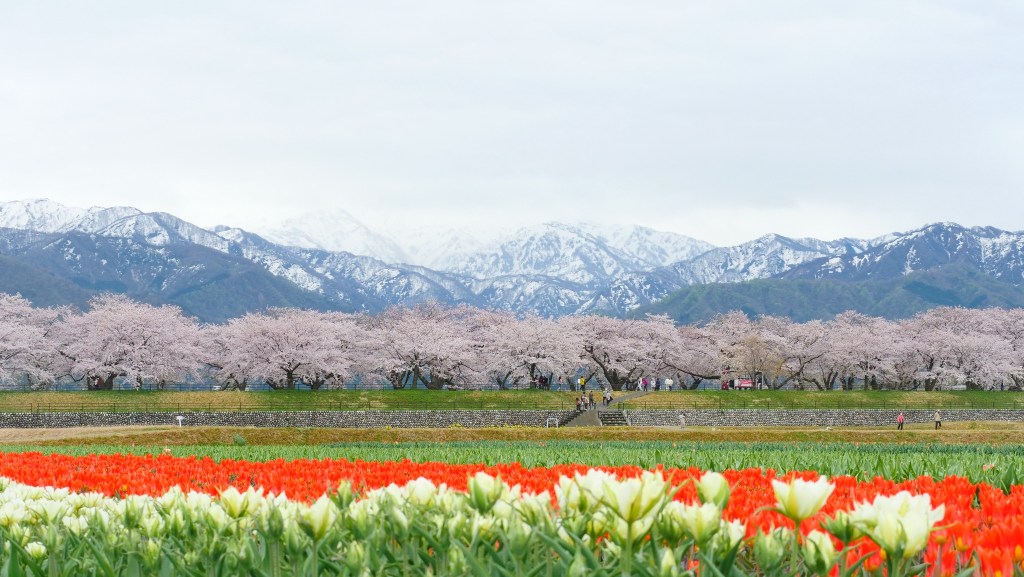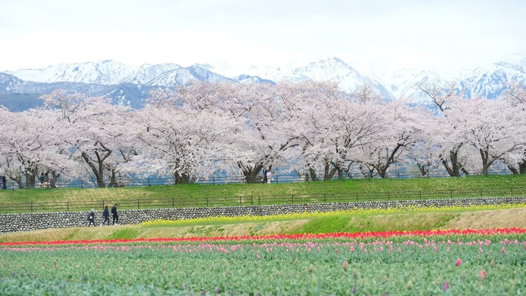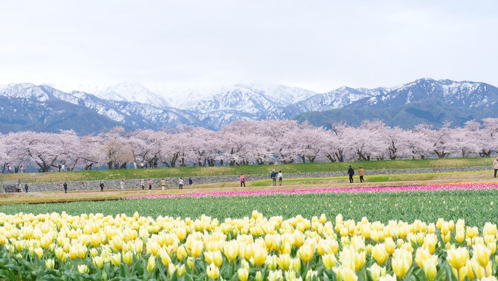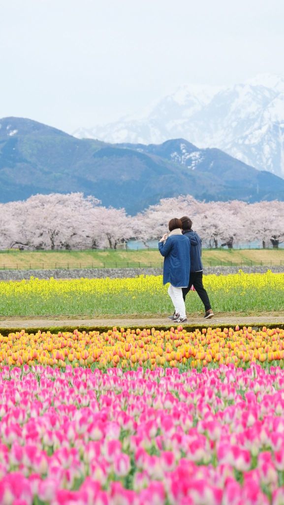 Asahi Spring Quartet คือช่วงเวลาพิเศษที่ 4 อย่าง มาบรรจบกัน นั่นคือยอดเขา Japan Alps ที่ปกคลุมด้วยสีขาวของหิมะในปลายฤดูหนาว สีชมพูของซากุระ นาโนฮานะ (rapeseed flowers) สีเหลืองซึ่งอยู่ถัดลงมา และทิวลิปหลากหลายสีสัน เป็นงานเทศกาลดอกไม้ของเมือง Asahi,Toyama ที่จัดขึ้นเป็นประจำทุกปีในฤดูใบไม้ผลิ