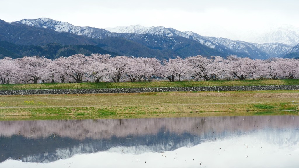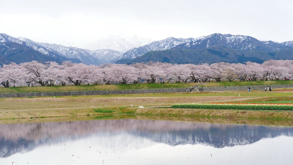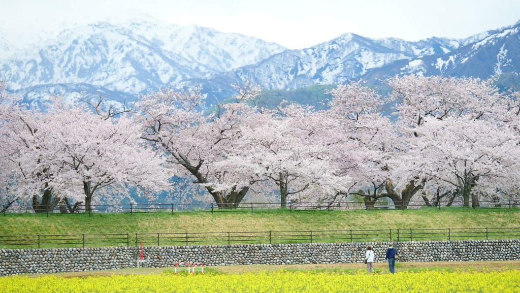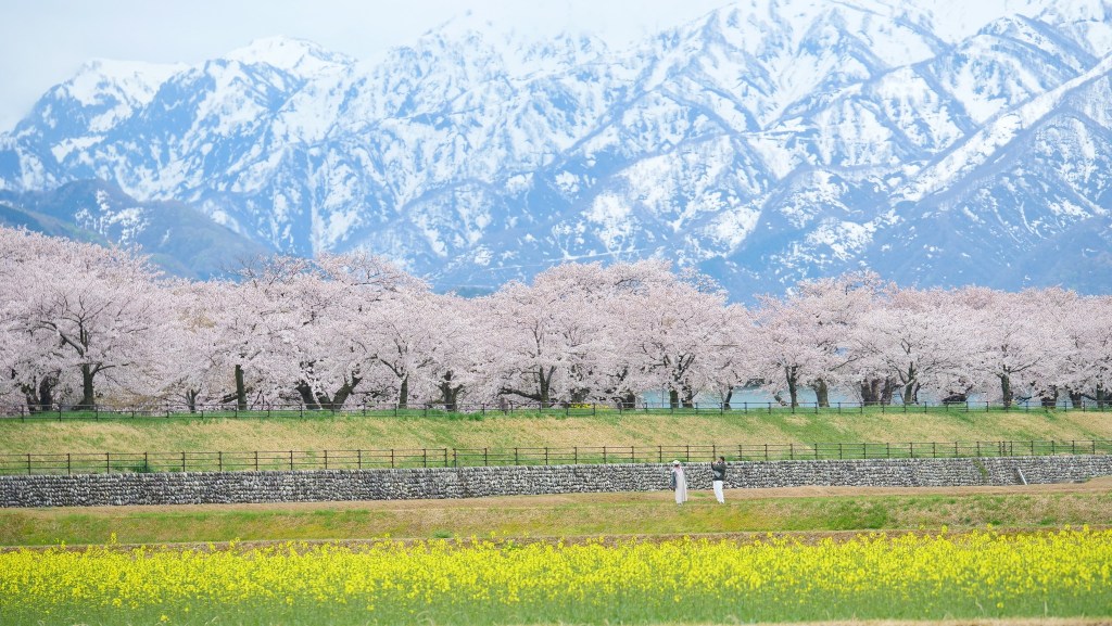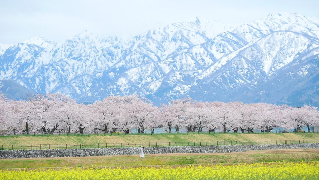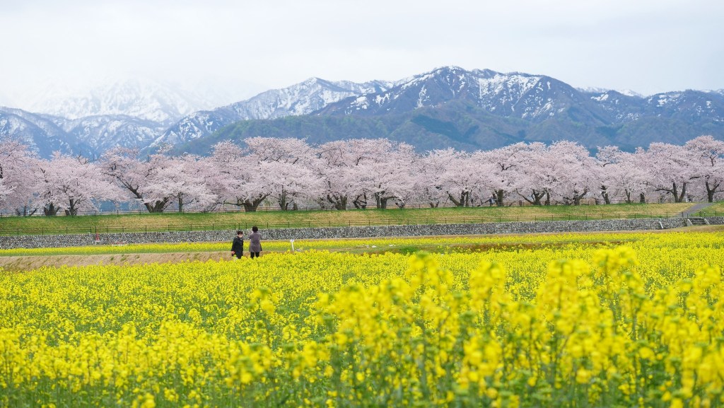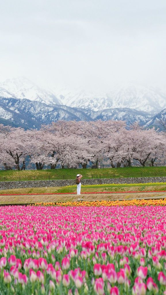 Asahi Spring Quartet คือช่วงเวลาพิเศษที่ 4 อย่าง มาบรรจบกัน นั่นคือยอดเขา Japan Alps ที่ปกคลุมด้วยสีขาวของหิมะในปลายฤดูหนาว สีชมพูของซากุระ นาโนฮานะ (rapeseed flowers) สีเหลืองซึ่งอยู่ถัดลงมา และทิวลิปหลากหลายสีสัน เป็นงานเทศกาลดอกไม้ของเมือง Asahi,Toyama ที่จัดขึ้นเป็นประจำทุกปีในฤดูใบไม้ผลิ