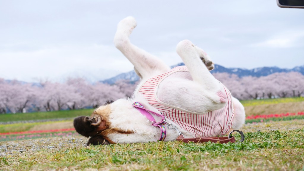 น้องหมามีความสุขกับทุ่งดอกไม้ และการได้ออกมาเดินเล่น