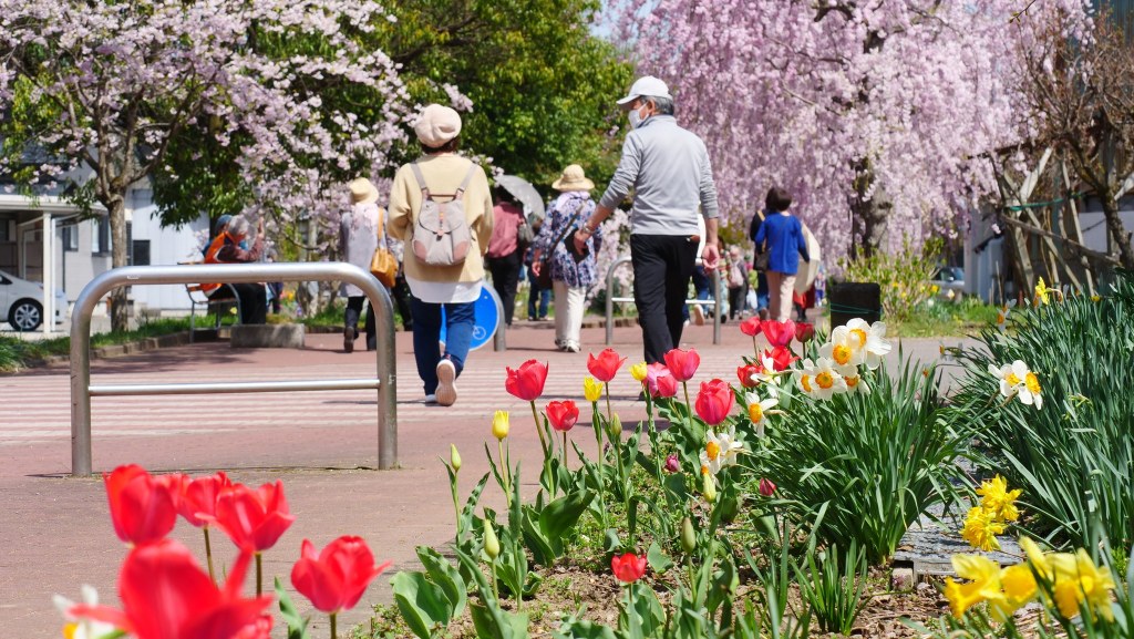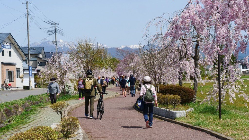 เส้นทางเดินชมซากุระ (Nicchu line)นั้นจะอยู่ไม่ไกลจากสถานีรถไฟ เมื่อออกจากสถานีรถไฟก็เดินเลี้ยวไปทางซ้ายมือ ตามผู้คนไปไม่เกินสิบนาที ถ้าเป็นช่วงซากุระฟูลบลูมที่นี่เป็นที่ที่ชาวญี่ปุ่นนิยมเดินทางมาชมกันอย่างมากมายมหาศาล ขนาดถนนที่ยาวถึงสามกิโลเมตรก็ยังแทบจะหาที่ปลอดคนไม่เจอ