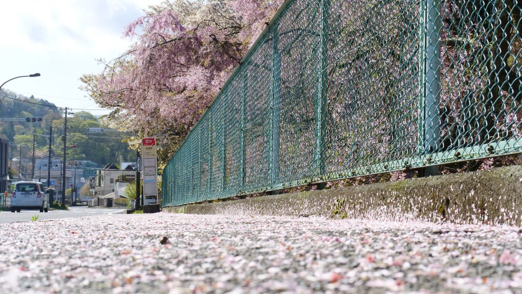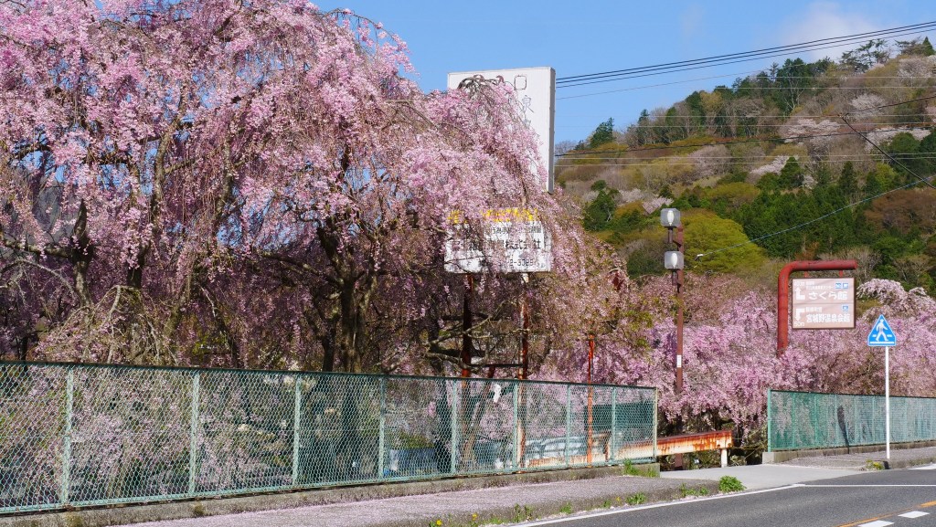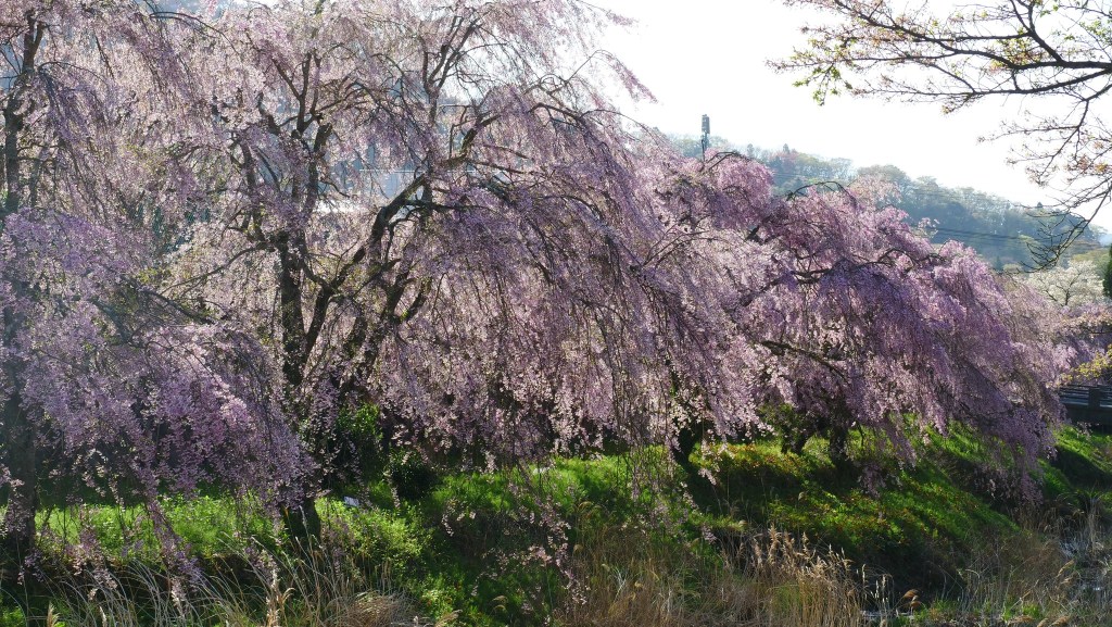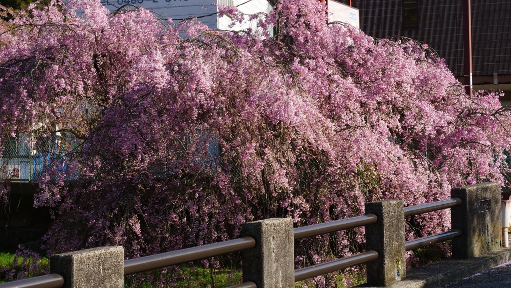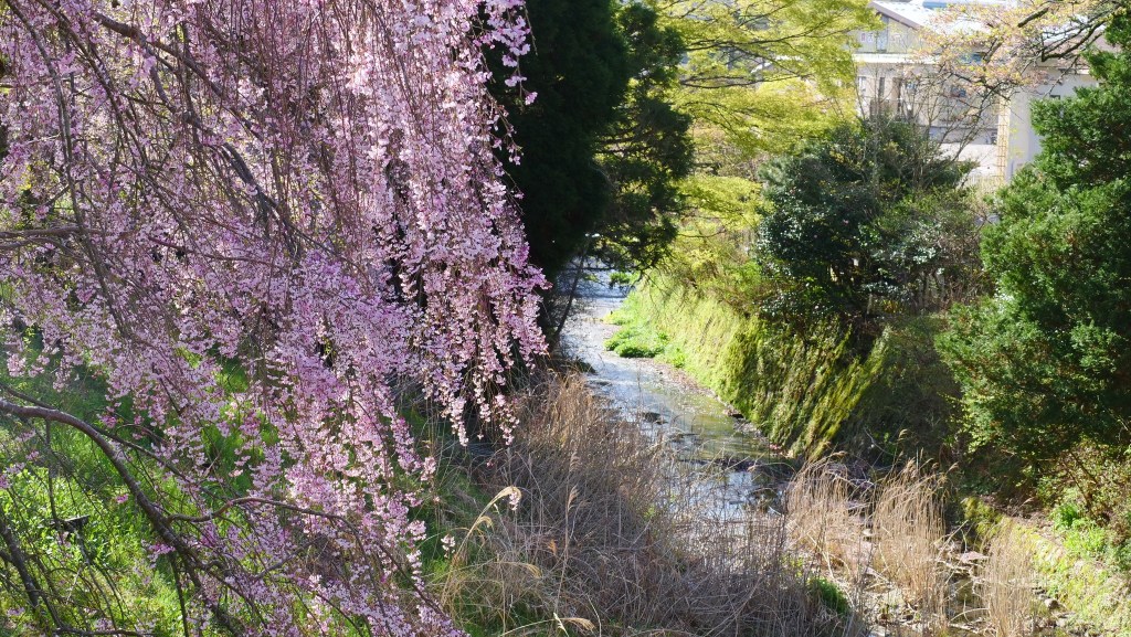 เดินย้อนกลับมาชมซากุระย้อยที่ริมคลองติดถนนใหญ่ อย่างน้อยก็ยังมาทันชมบางส่วน