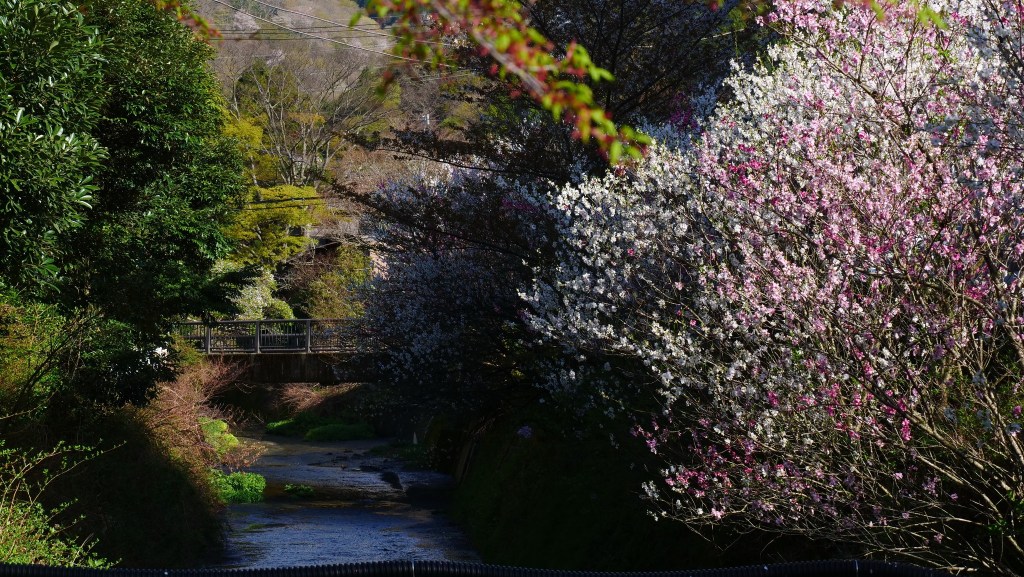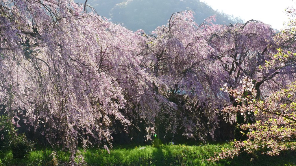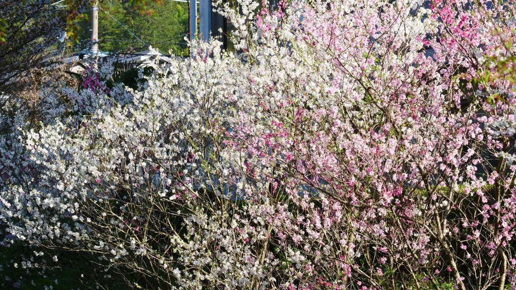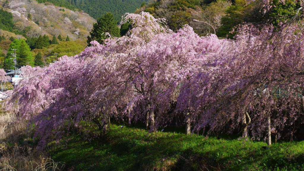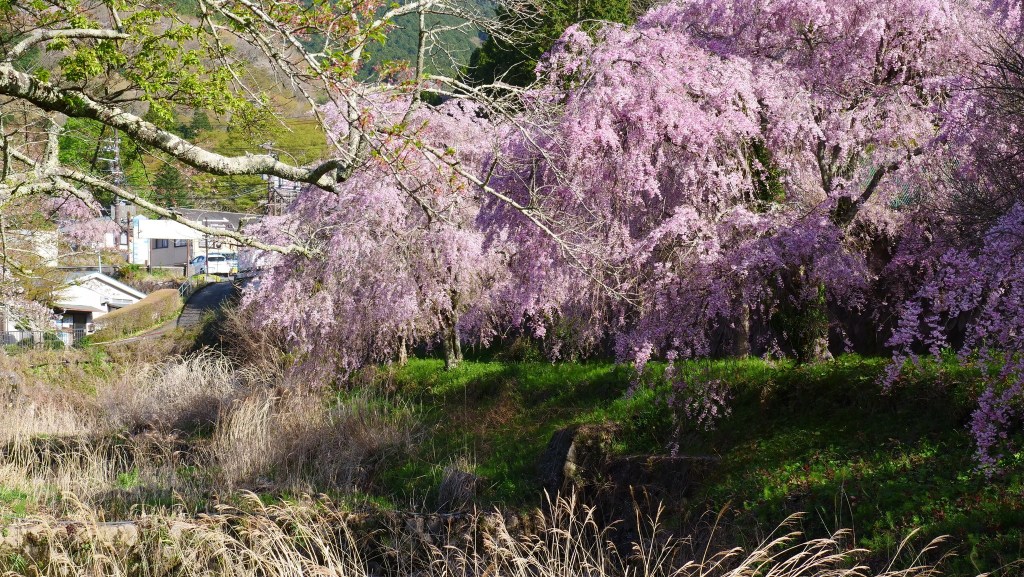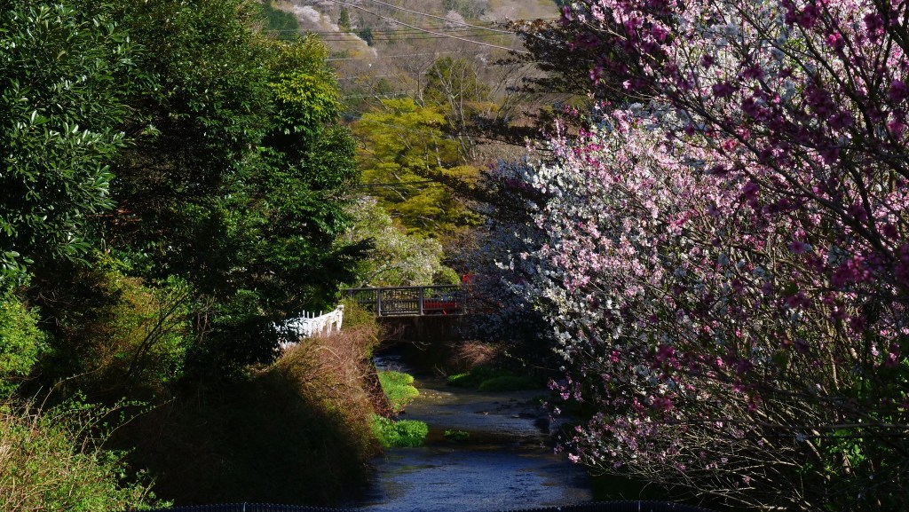 เดินย้อนกลับมาชมซากุระย้อยที่ริมคลองติดถนนใหญ่ อย่างน้อยก็ยังมาทันชมบางส่วน