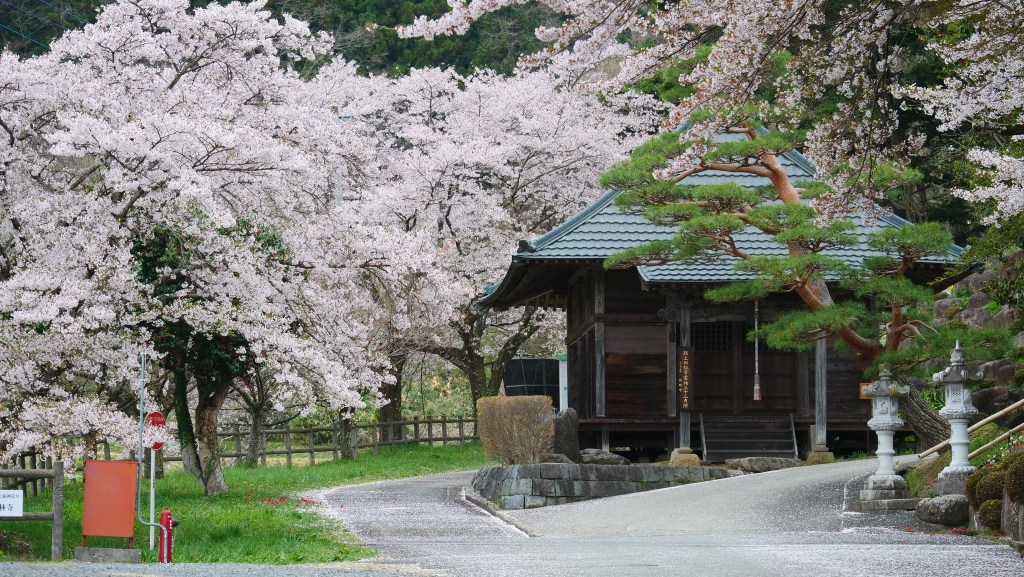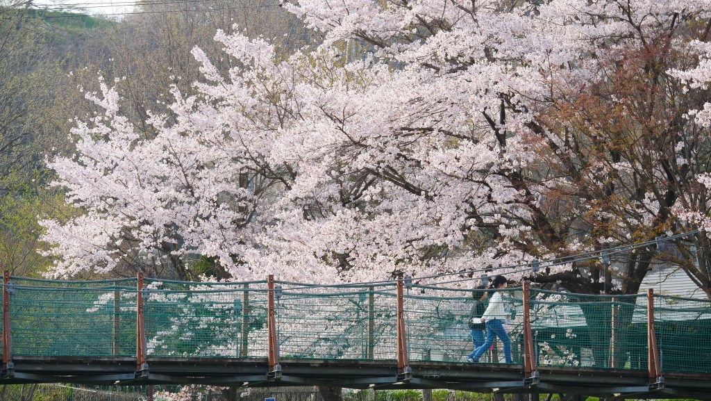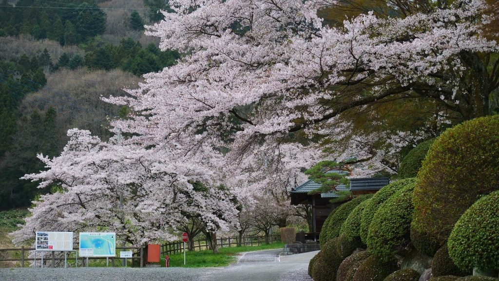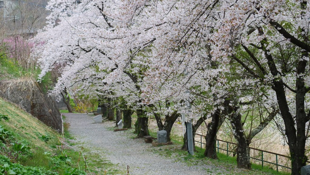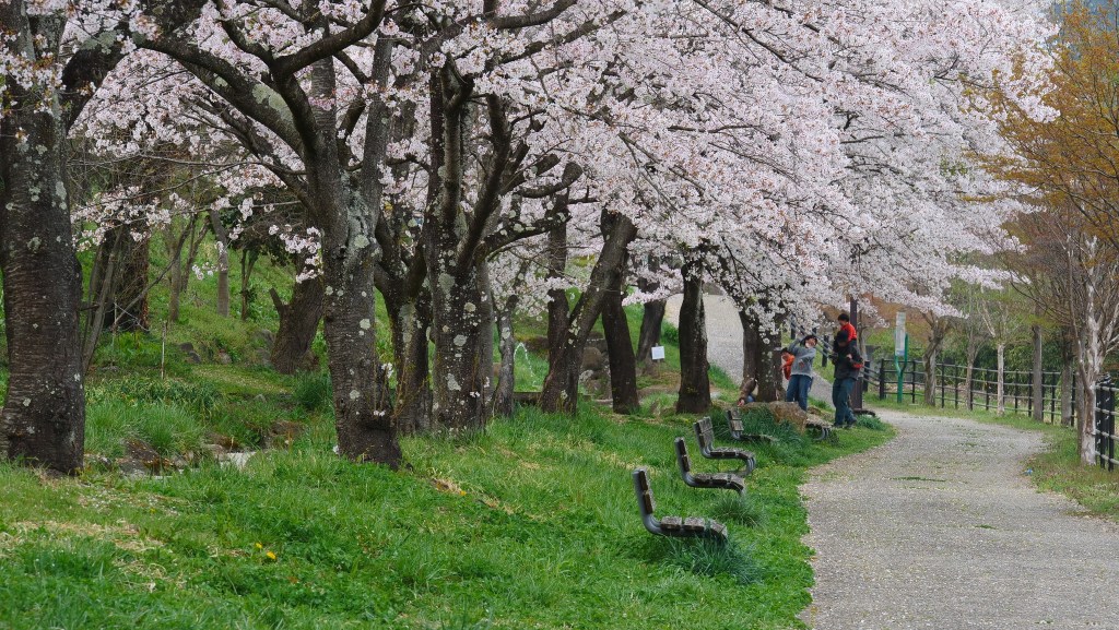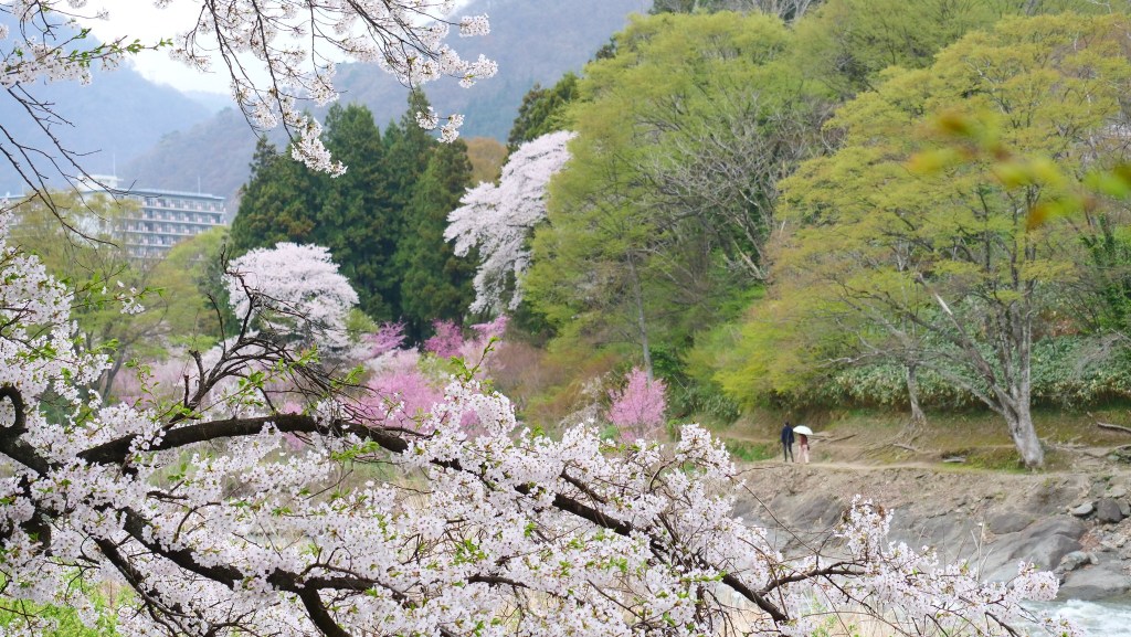 เราจะลงรถบัสที่ป้าย Kawakami Iriguchi แล้วเดินลงมายังแม่น้ำ ระหว่างทางจะผ่าน ต้นซากุระที่กำลังสวยงาม