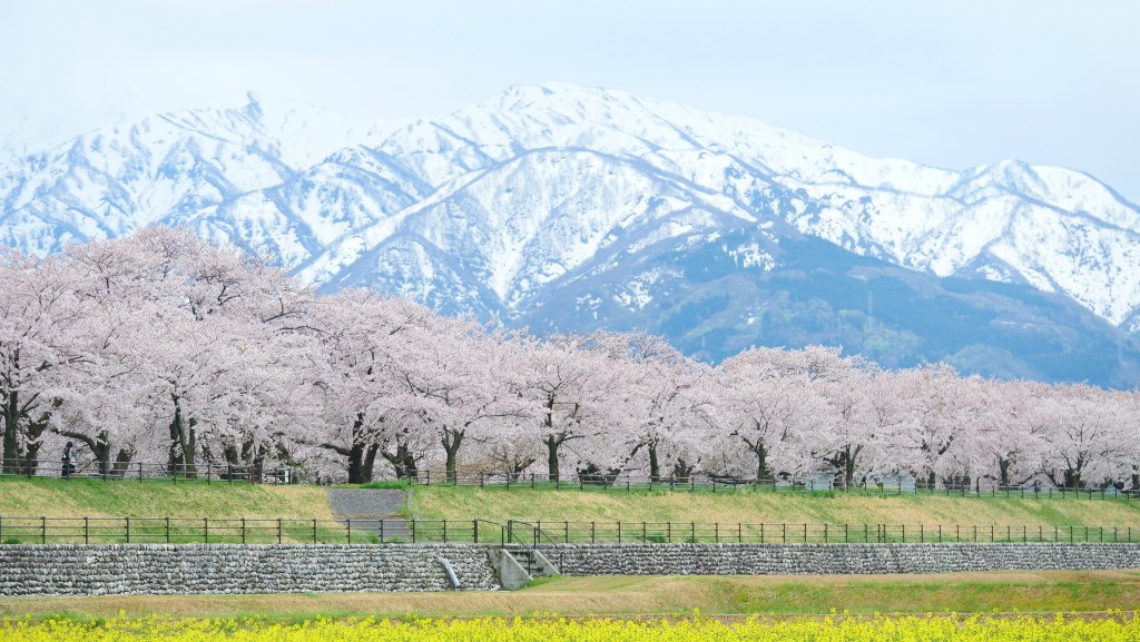 หนึ่งในส่วนที่เป็นองค์ประกอบสำคัญที่สุดของ Asahi Spring Quartet ก็คือต้นซากุระริมแม่น้ำ Funakawa