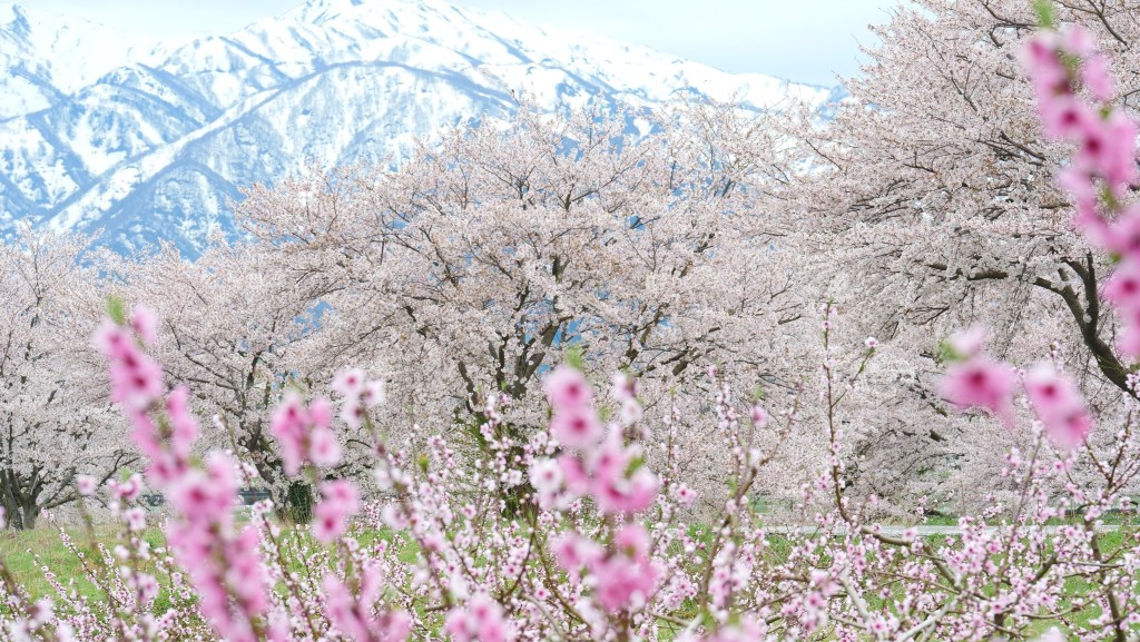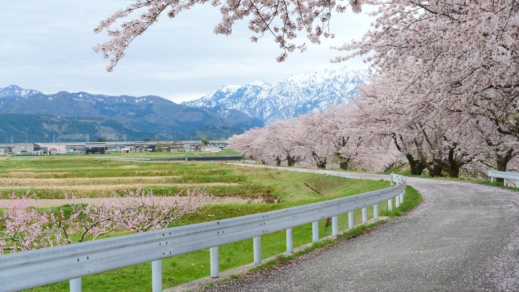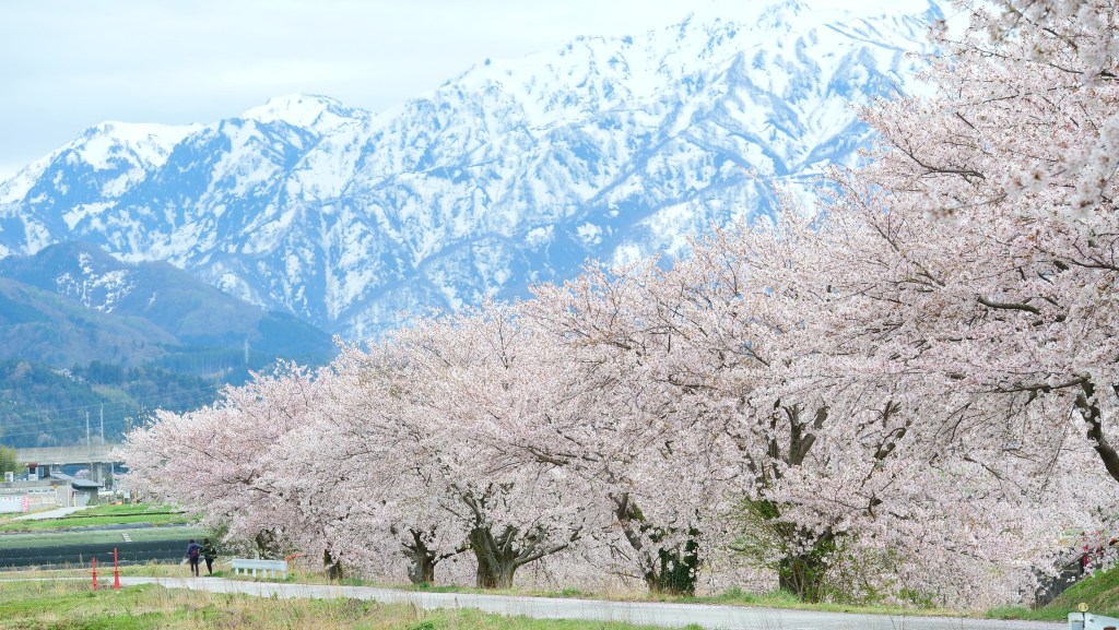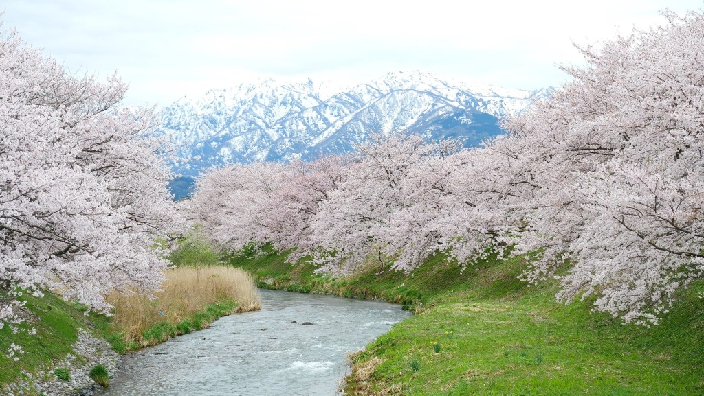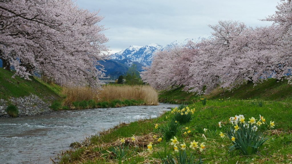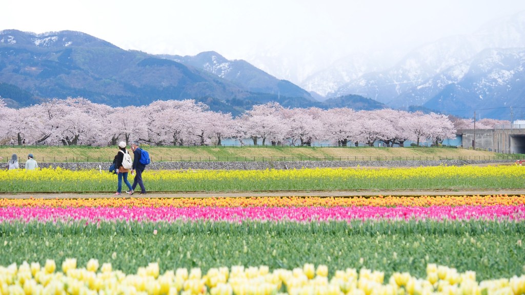 Cherry trees along funakawa river เป็นหนึ่งในองค์ประกอบสำคัญสี่ส่วนของ Asahi Spring Quartet คือช่วงเวลาพิเศษที่มีองค์ประกอบ 4 อย่าง มาบรรจบกัน นั่นคือยอดเขา Japan Alps ที่ปกคลุมด้วยสีขาวของหิมะในปลายฤดูหนาว สีชมพูของซากุระ นาโนฮานะ (rapeseed flowers) สีเหลืองซึ่งอยู่ถัดลงมา และทิวลิปหลากหลายสีสัน ประกอบไปด้วย หิมะบนยอดเขา Japan Alps ที่ปกคลุมด้วยสีขาวในปลายฤดูหนาว สีชมพูของซากุระที่ปลูกอยู่ริมแม่น้ำ ตามด้วยนาโนฮานะ (rapeseed flowers) สีเหลืองซึ่งอยู่ถัดลงมา และทิวลิปหลากหลายสีสัน ที่ถูกบรรจงสร้างให้บรรจบกันในช่วงฤดูใบไม้ผลิ