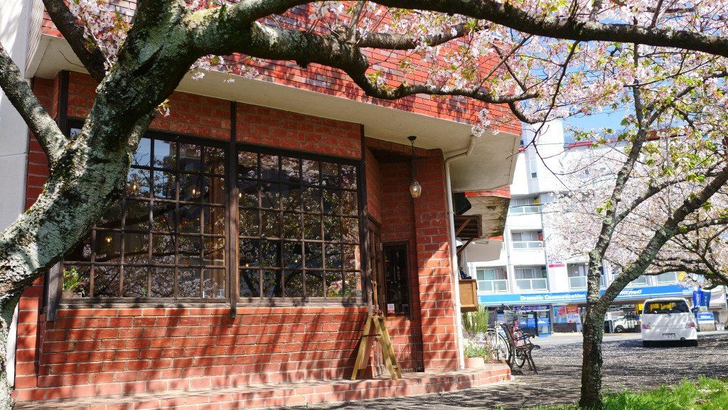Cafe ขนมปังโฮมเมดแสนอบอุ่น จุดเริ่มต้น(เป็นจุดสุดทางหากเดินออกไปจากด้านใน) ของเส้นทางเดินชมซากุระริมแม่น้ำ Genbe river เมือง Mishima