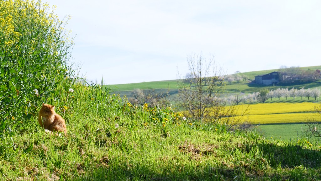 เมื่อได้กลับมาเยือนเป็นครั้งที่สาม คราวนี้หมู่บ้าน Oltingen ต้อนรับฉันอย่างดี ดอกไม้กำลังบานสวยเต็มที แถมยังมีแมวมารอแต่เช้า