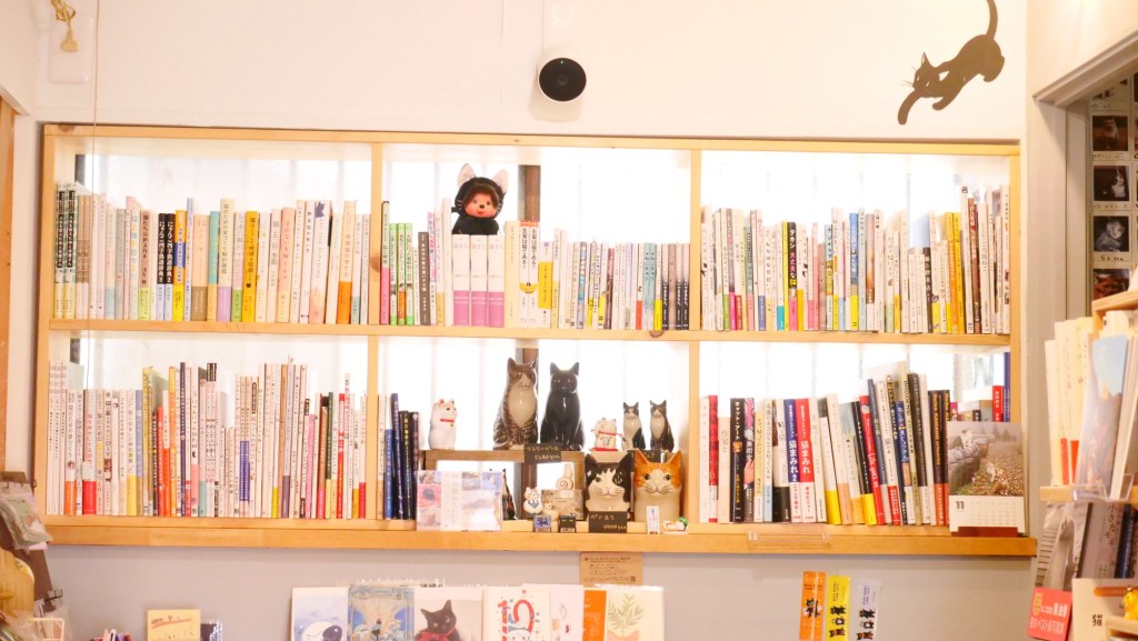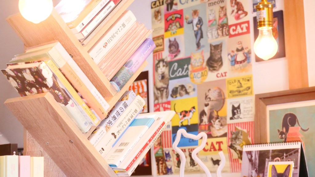หนังสือในร้านจะมีทั้งหนังสือภาพและหนังสือที่เป็นตัวอักษรที่เล่าเรื่องราวเกี่ยวกับแมว ส่วนเนื้อหาคำบรรยายก็ล้วนเป็นภาษาญี่ปุ่น