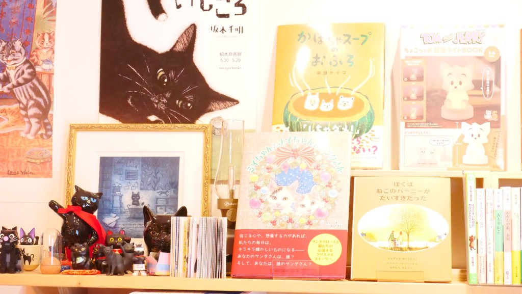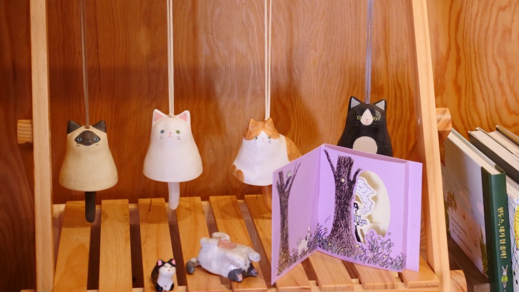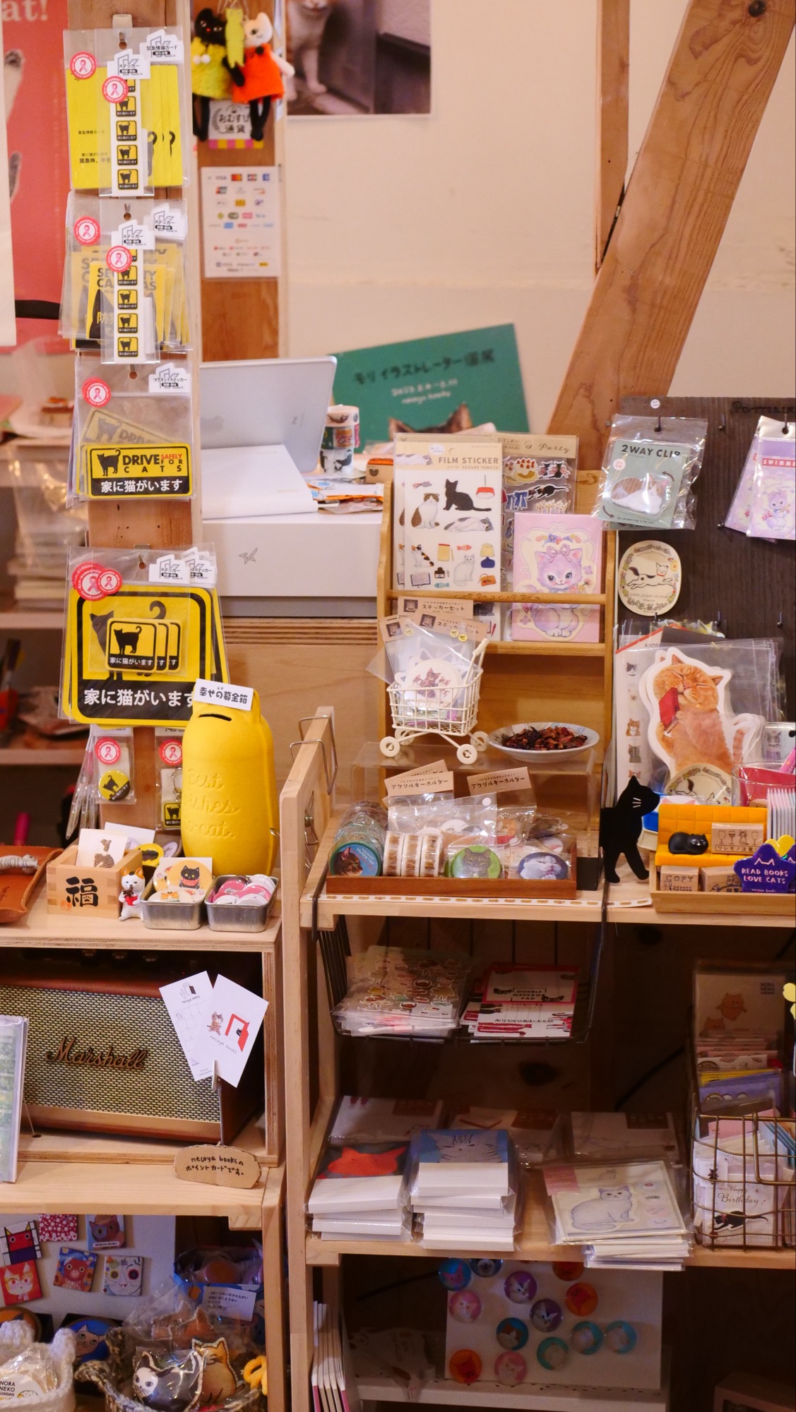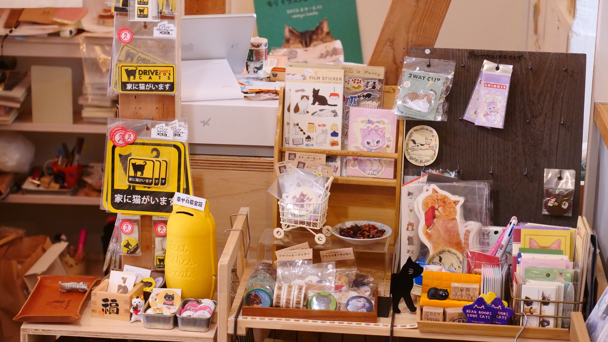 นอกจากหนังสือแล้ว ภายในร้ายก็ยังมีสินค้าต่างๆ เช่นถุงผ้า ตุ๊กตา โปสการ์ด ปฏิทิน post-it แน่นอนว่าต้องเป็นรูปแมว