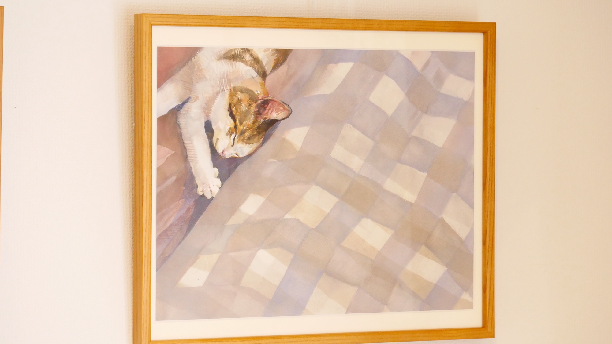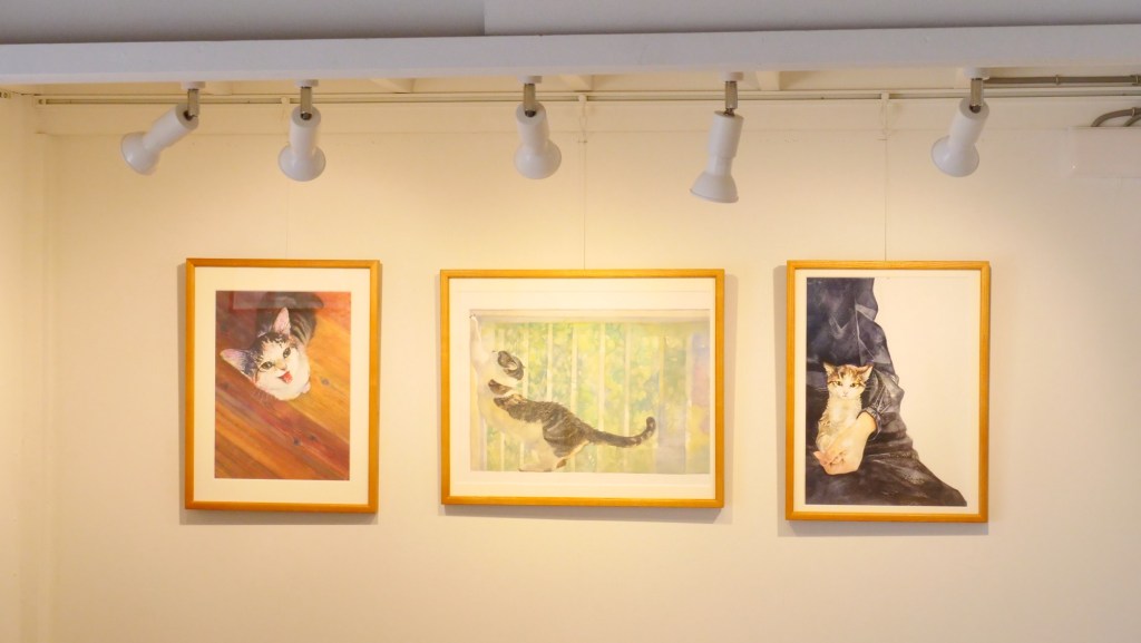 เจ้าของร้านเชื้อเชิญให้เดินขึ้นไปชมชั้นสอง ซึ่งมีงานแสดงนิทรรศการภาพวาดของศิลปินท่านหนึ่งอยู่