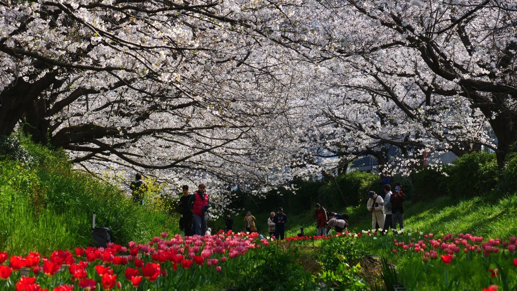 ถึง Shin-Yokohama ประมาณเก้าโมงเช้าแล้วก็นั่ง Taxi จากสถานีมาที่สวนประมาณสิบห้านาที คนก็เริ่มจะออกมาเดินเล่นชมดอกไม้กันเยอะพอสมควรแล้ว ฉันมาไกลจากเกียวโตถึงเช้าที่สุดก็ได้แค่นี้ ถ้าอยากเจอบรรยากาศที่คนน้อยกว่านี้ก็คงต้องพักใน Tokyo