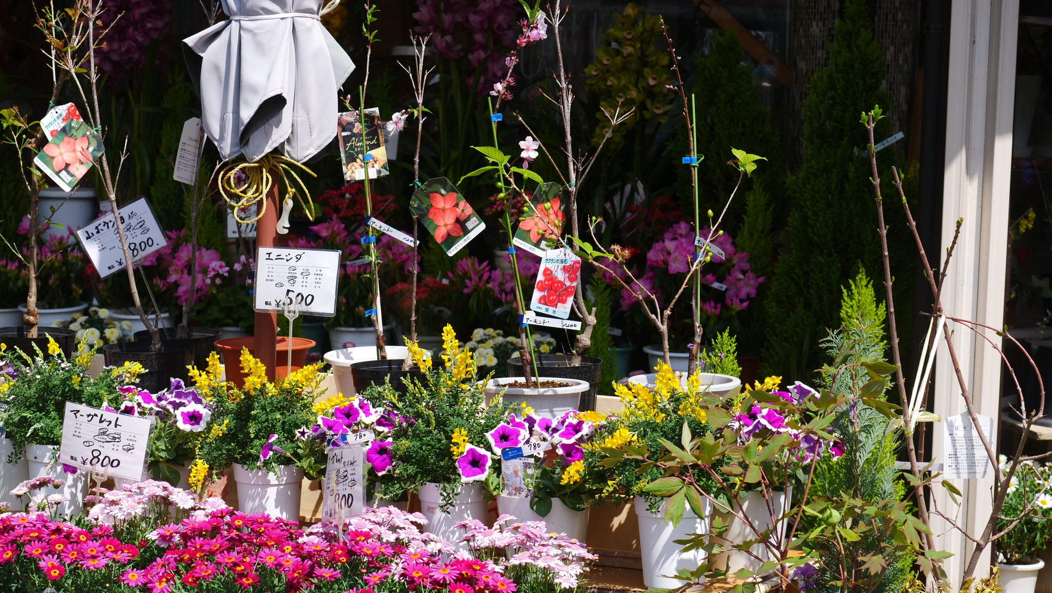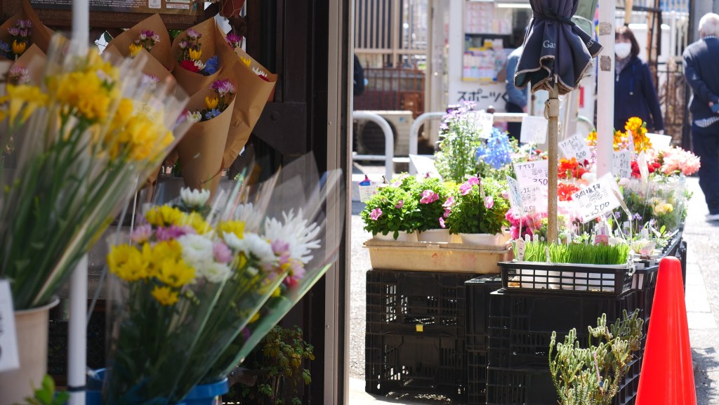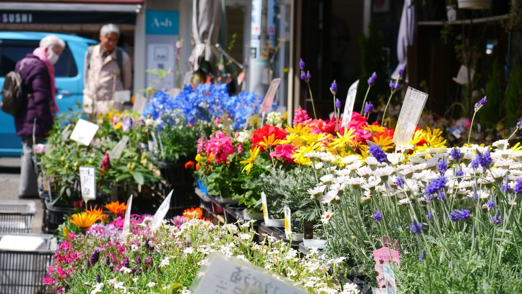 ร้านดอกไม้เล็กๆอยู่หน้าตลาด เติมบรรยากาศของฤดูใบไม้ผลิสดใสมีชีวิตชีวา และเป็นที่โปรดปรานของคนมีอายุ เมื่อเดินออกจากสถานีรถไฟมาก็อดที่จะแวะชมดอกไม้สวยๆไม่ได้