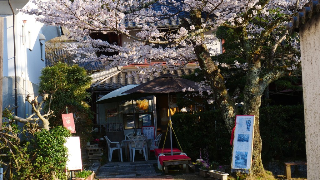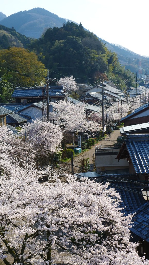 ถ้าเดินตามถนนเข้าไปจนสุดจะเจอศาลเจ้า เราสามารถเดินขึ้นไปถ่ายภาพมุมสูงให้เห็นแนวต้นซากุระที่ปลูกเป็นทาง ขนานกับถนนประจำหมู่บ้านและ Jizo river