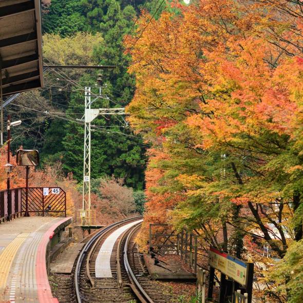นั่งรถไฟ ไปชมอุโมงค์ใบไม้แดง ที่ Kibune village, Kyoto