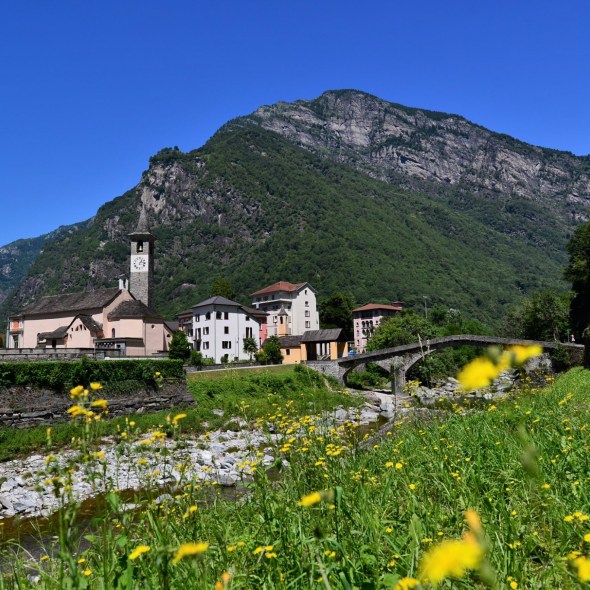 Bignasco : ทางแยกสู่ Val Bavona / Vallemaggia
